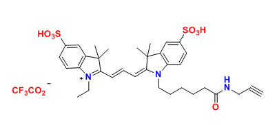 各種花青3(Cy3)染料已用于標(biāo)記生物分子,用于熒光成像和其他基于熒光的生化分析。它們廣泛用于標(biāo)記肽,蛋白質(zhì)和寡核苷酸等。Cy3染料在與蛋白質(zhì)結(jié)合后熒光大幅度增加。Cy3炔烴選擇性地與疊氮基團(tuán)反應(yīng)。